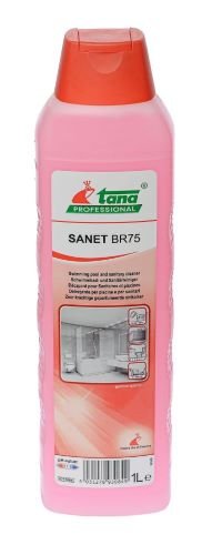 Sanet – BR 75 – sredstvo za čišćenje sanitarija i bazena. Odstranjuje kamenac, krečnjački sapun, kamenac od urina, zakorelu nečistoću, ostatke od rđe i cementa. Ne oštećuje hromirane delove sanitarija. Dezinfikuje. Za toalete, pisoare, kade, javne i privatne bazene i površine otporne na kiseline. Doziranje: razrediti u odnosu 1:5 do 1:20 sa vodom. Naneti prskanjem, četkom ili krpom i postiti da deluje. Isprati vodom. Kod zakorelih tvrdokornih nečistoća primeniti koncentrovano sredstvo.